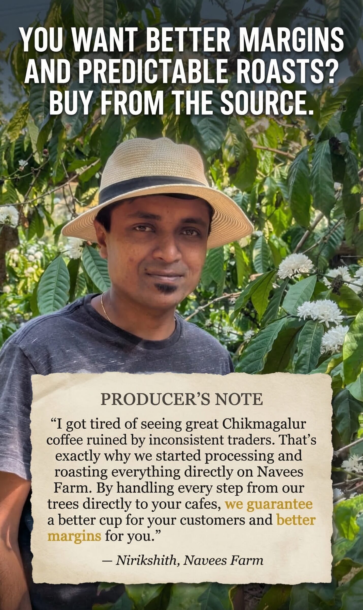 The 48-Hour Wet Fermentation Phase: The pulped coffee is submerged in clean water tanks for exactly 48 hours. This traditional wet fermentation allows native enzymes and microbes to gently break down the mucilage. This specific timeframe is the sweet spot for unlocking the vibrant Wild Orange and Mixed Berry notes while maintaining a pristine, clean profile.